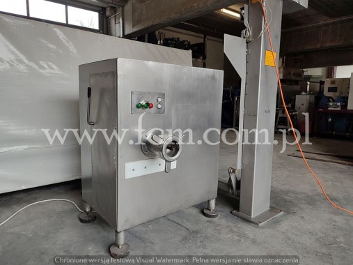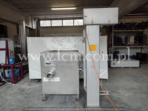 Wilk kątowy K+G WETTER - Typ: WW 130 - Średnica gardzieli: 130 mm - Wysokość gardzieli od podłoża: 740 mm - Pojemność: 200L - Zasilanie: 400V 50Hz - Moc: 16.5kW - Wydajność: 3500 kg/h - Wykonany ze stali nierdzewnej - Nowy zestaw tnący - Wymiary urządzenia bez podestu: 1220 x 930 x 1000 mm - Wymiary urządzenia z podestem(maksymalne): 2000 x 930 x 1400 mm - Stan magazynowy: 1 sztuka - Stan: Po generalnym remoncie, gotowy do pracy