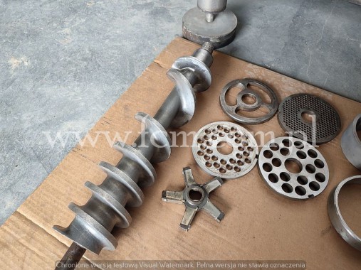 Wilk Meissner - Typ: AS-114 - Średnica gardzieli: 114 mm - 2 biegi prędkości - Zbudowany ze stali nierdzewnej (materiał gardzieli - mosiądz) - Zasilanie elektryczne: 400V 50HZ - Wymiary zewnętrzne: 1200 x 700 x 1200 mm - Wymiary komory zasypowej: 700 x 600 mm - Stan magazynowy: 1 sztuka - Stan: Używany, dobry