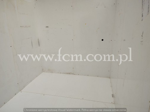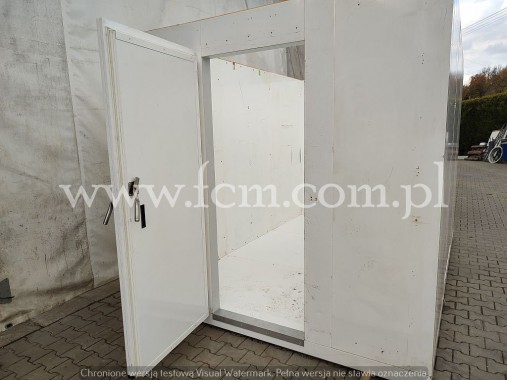 Komora mroźnicza komplet - Wymiary zewnętrzne: 7200 x 3000 x 3000 mm - Podłoga z płytą ze stali nierdzewnej - Mroźnia podzielona na dwie komory (możliwość zrobienia jednego, dużego pomieszczenia) - Grubość płyt ścian i podłogi: 150 mm - Stan magazynowy: 1 komplet