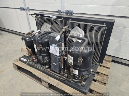 Zespół sprężarkowy Bock - Typ: HAX4/555-4 (x2) - Przepływ: 48.2 m3/h (x2) - Wydajność chłodnicza zestawu: 29 kW przy -25°C/40°C, 23 kW przy -30°C/40°C, 13 kW przy -40°C/40°C - Czynnik chłodniczy: R404A - Wymiary urządzenia: 2100 x 1350 x 1600 mm - Stan magazynowy: 1 zespół
