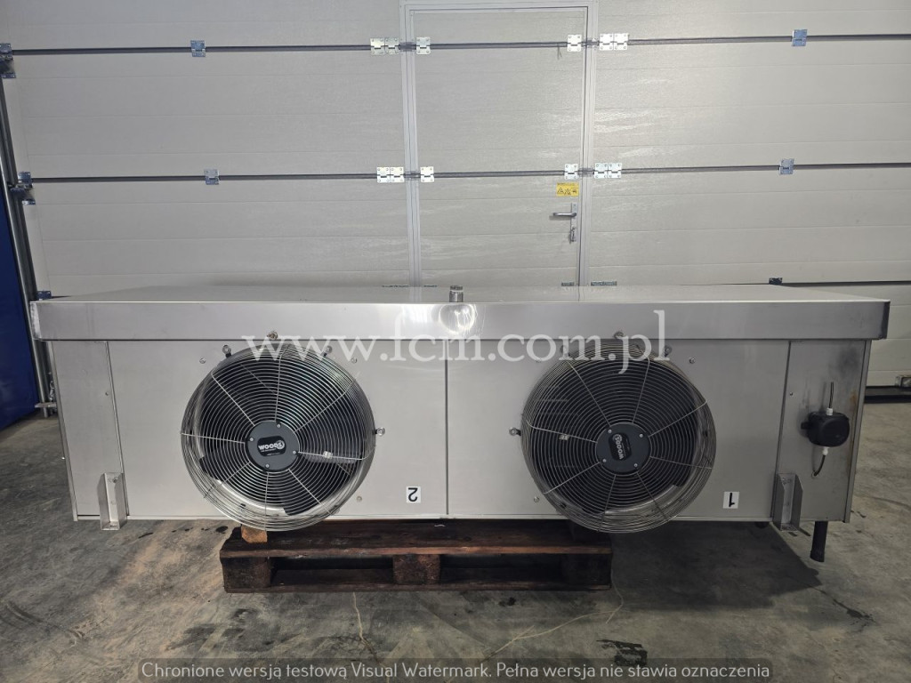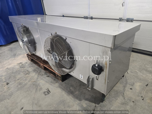 Chłodnica Helpman - Typ: LEX-16 - Wydajność chłodnicza: 8 kW przy DT8 - Lamel: 6 mm - Miejsce na grzałki elektryczne - Ilość wentylatorów: 1 x 450 mm - Obr/min: 1410 - Wymiary urządzenia: 1100 x 650 x 700 mm - Czynnik chłodniczy: Freon - Stan magazynowy: 1 sztuka