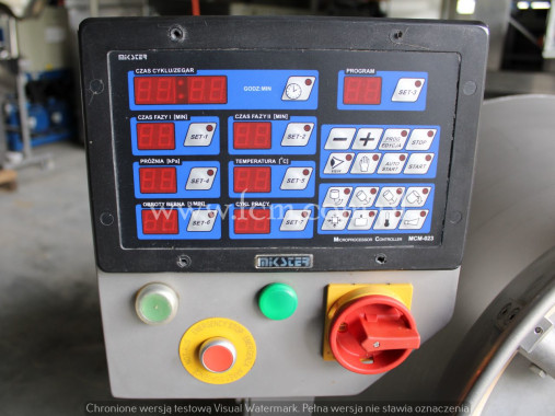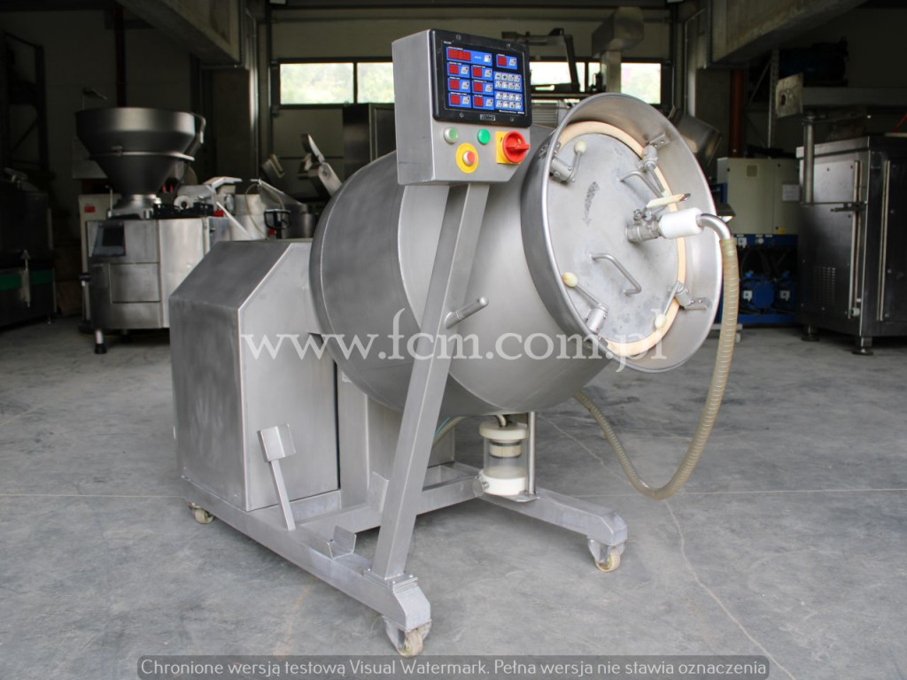 Używana masownica GUNTHER - Typ: GPA 300K - Pojemność: 300L - Max. ładowność: 200kg - Moc: 2.5kW - Wymiary urządzenia: 1950 x 1000 x 2100 mm - Wykonany ze stali nierdzewnej - Z chłodzeniem - Pompa próżniowa (próżnia w pracy ciągłej lub przerywanej) - Dotykowy panel kontrolny (możliwość ustawienia 100 programów) - Bezstopniowa regulacja prędkości bębna - Dowolny wybór kąta nachylenia - Możliwość wyboru kierunku obrotów / asymetryczne przegrody - Okres pracy z czasami obrotowymi i przerwami - Stan magazynowy: 2 sztuki - Stan: Bardzo dobry, gotowy do pracy