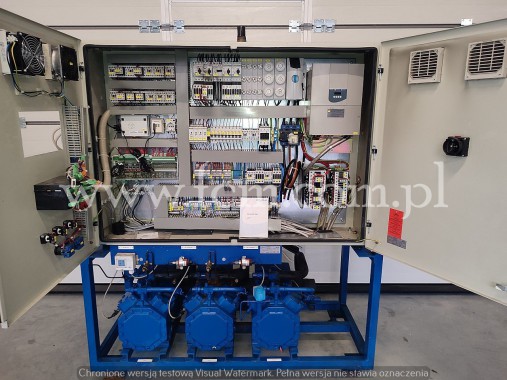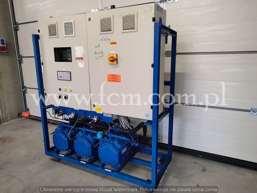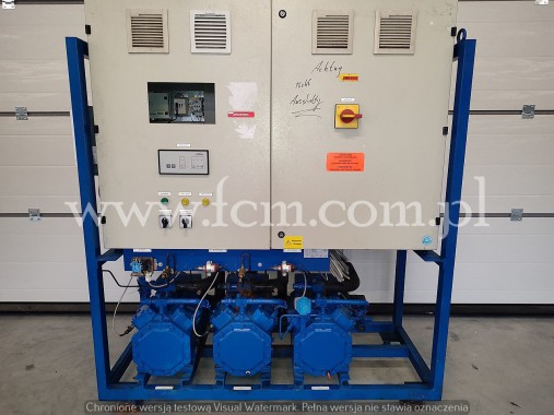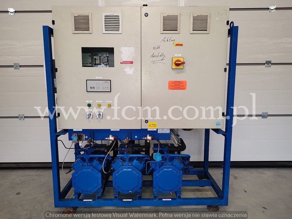 Używany zespół sprężarkowy Bitzer wraz z oryginalnym skraplaczem w komplecie. Sterowanie z dokumentacją, oryginalna zabudowa. Zespół sprężarkowy jest połączony ze skraplaczem Guntner na 4 wentylatorach.