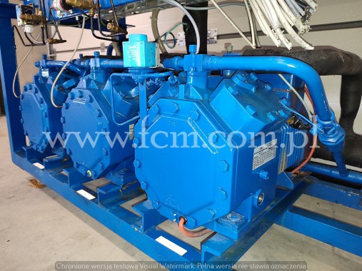 Zespół sprężarkowy Bock - Typ: HAX4/555-4 (x2) - Przepływ: 48.2 m3/h (x2) - Wydajność chłodnicza zestawu: 29 kW przy -25°C/40°C, 23 kW przy -30°C/40°C, 13 kW przy -40°C/40°C - Czynnik chłodniczy: R404A - Wymiary urządzenia: 2100 x 1350 x 1600 mm - Stan magazynowy: 1 zespół
