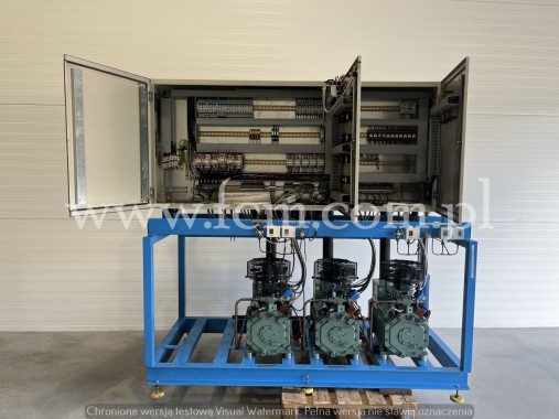 Używany zespół sprężarkowy firmy Bitzer. Posiadamy skraplacz oraz parowniki do kompletu. Wydajność chłodnicza zespołu przy -10°C/40°C: R134a: 56 kW R448A: 88.4 kW R404A: 90.8 kW R407C: 91 kW