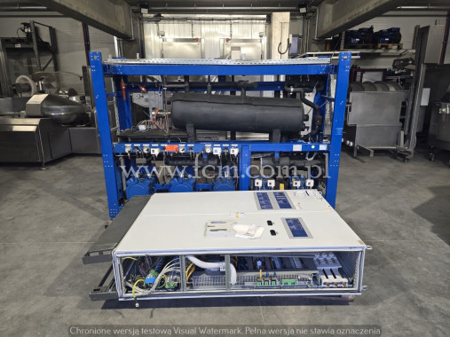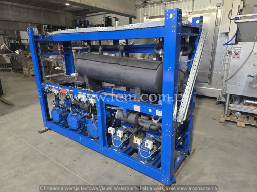 Używany zespół sprężarkowy Bitzer wraz z oryginalnym skraplaczem w komplecie. Sterowanie z dokumentacją, oryginalna zabudowa. Zespół sprężarkowy jest połączony ze skraplaczem Guntner na 4 wentylatorach.