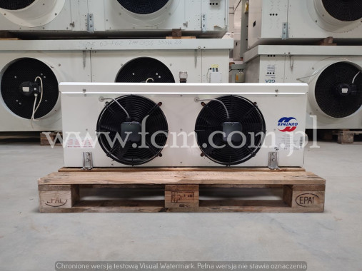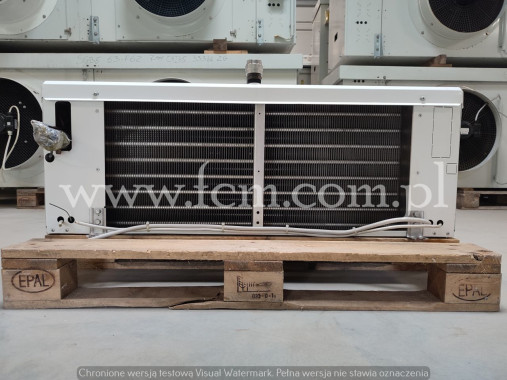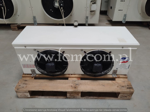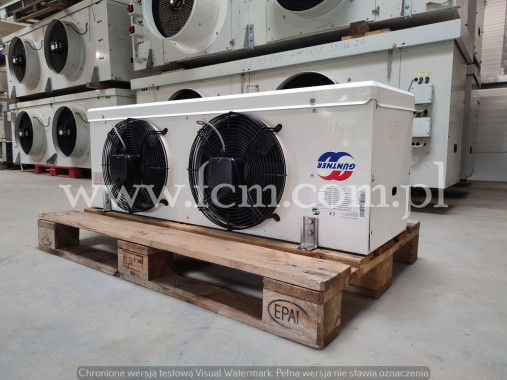 Chłodnica Guntner - Typ: GDF 030.1B/27-E - Wydajność chłodnicza: 2.83 kW przy DT8 - Lamel: 7 mm - Grzałki elektryczne - Ilość wentylatorów: 2 x 300 mm - 900/1250 obr/min - Wymiary urządzenia: 1640 x 500 x 250 mm - Czynnik chłodniczy: Freon - Pojemność: 4.1 L - Rok produkcji: 2012 - Stan magazynowy: 1 sztuka