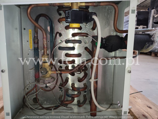 Używana chłodnica dwustronna Guntner Typ: DHN 046C/310E Wydajność chłodnicza: 19 kW przy DT8, 15 kW przy DT7 Lamel: 10 mm Grzałki elektryczne Czynnik chłodniczy: Freon Pojemność: 34 L Stan magazynowy: 4 sztuka Stan: Używany, urządzenie w pełni sprawne