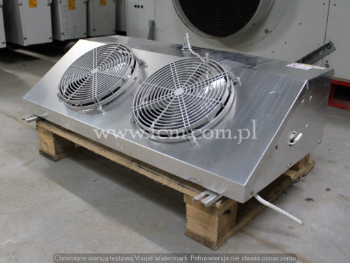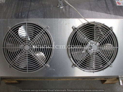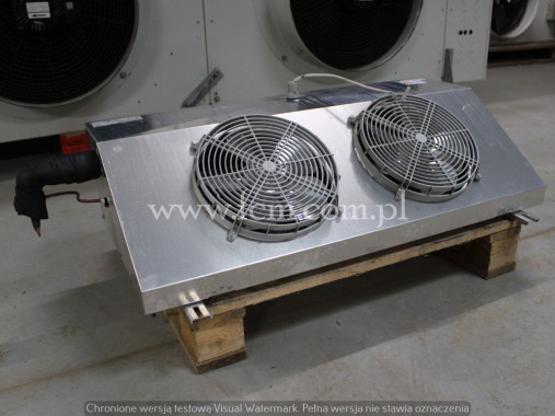 Chłodnica Guntner - Typ: GDF 030.1B/27-E - Wydajność chłodnicza: 2.83 kW przy DT8 - Lamel: 7 mm - Grzałki elektryczne - Ilość wentylatorów: 2 x 300 mm - 900/1250 obr/min - Wymiary urządzenia: 1640 x 500 x 250 mm - Czynnik chłodniczy: Freon - Pojemność: 4.1 L - Rok produkcji: 2012 - Stan magazynowy: 1 sztuka