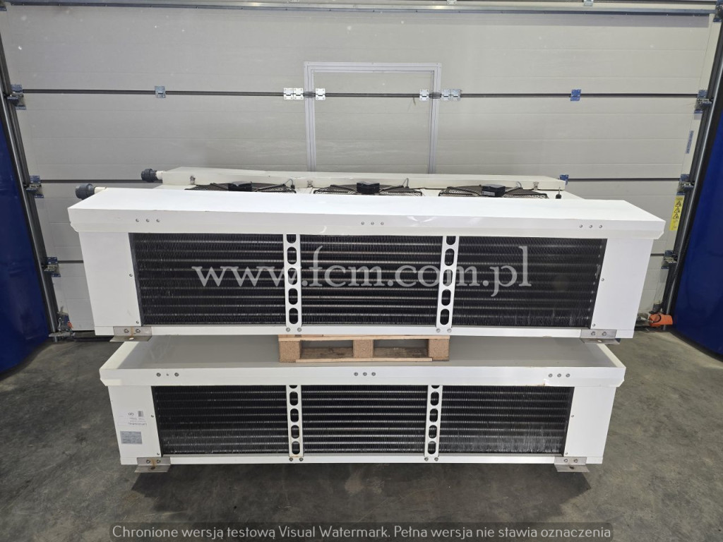Chłodnica GEA KUBA - Typ: DFAE 052D - Wydajność chłodnicza: 3.32 kW przy DT8 - Lamel: 4.5 mm - Grzałki elektryczne - Ilość wentylatorów: 2 x 300 mm - Obr/min: 1100 - Wymiary urządzenia: 1400 x 650 x 300 mm - Czynnik chłodniczy: Freon - Pojemność: 2.7 L - Waga: 43 kg - Rok produkcji: 2017 - Stan magazynowy: 1 sztuka