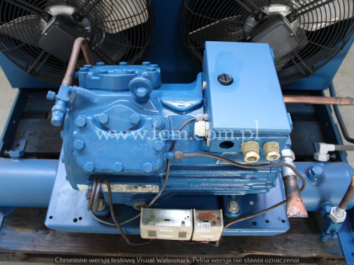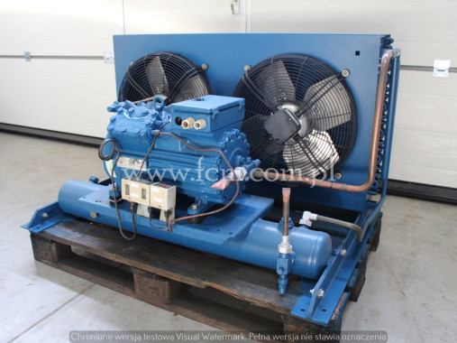 Agregat chłodniczy Bitzer - Typ: 4CC-9.2Y-40S + 4CC-6.2Y-40S - Przepływ: 32.5 m3/h (x2) - Wydajność chłodnicza: 35 kW przy -10°C/40°C 18 kW przy -25°C/40°C, 14 kW przy -30°C/40°C, 7.5 kW przy -40°C/40°C - Czynnik chłodniczy: R404A - Wymiary urządzenia: 1600 x 1000 x 1000 mm - Ilość wentylatorów: 2 x 500 mm - Stan magazynowy: 1 sztuka
