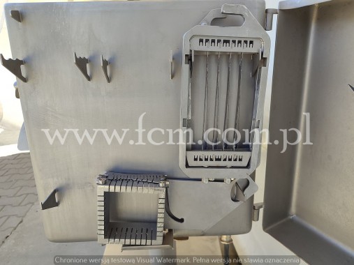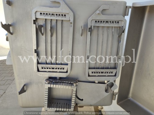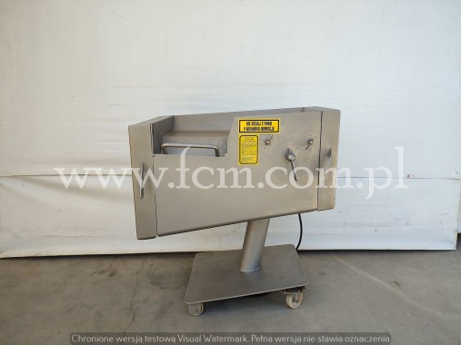 KOSTKOWNICA Ruhle - Typ: SR1 - Wymiary komory załadunkowej : 330 x 100 x 100 mm - Wymiary urządzenia : 1000 x 600 x 1100mm - Wydajność : 900-1500 kg/h. 80 cięć na minutę - Sita: 25x25mm / 19x19mm (możliwość regulacji) - Moc: 1.5 kW - Waga: 270kg - Zasilanie: 400V, 50 Hz 3N - Rok produkcji: 2011 - Maszyna w całości wykonana ze stali kwasoodpornej - Stan magazynowy: 1 sztuka - Stan: bardzo dobry