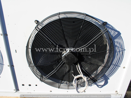 Skraplacz Guntner - Typ: GVH 067B/2x3N - Wydajność chłodnicza: 286/240 kW - Przepływ powietrza: 85 650/65 420 m3/h - Ilość wentylatorów: 6 x 650 mm - obr/min: 1340/1000 - Wymiary urządzenia: 3400 x 2100 x 1600 mm - Pojemność: 105 L - Waga: 600 kg - Stan magazynowy: 1 sztuka