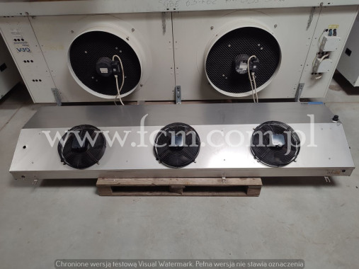 Chłodnica Guntner - Typ: GDF 030A/27-E - Wydajność chłodnicza: 2.6 kW przy DT8 - Lamel: 7 mm - Grzałki elektryczne - Ilość wentylatorów: 2 x 300 mm - Wymiary urządzenia: 1400 x 500 x 230 mm - Czynnik chłodniczy: Freon - Pojemność: 2.4 L - Stan magazynowy: 6 sztuk