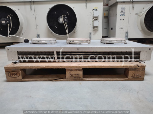 Chłodnica Guntner - Typ: GDF 030.1B/27-E - Wydajność chłodnicza: 2.83 kW przy DT8 - Lamel: 7 mm - Grzałki elektryczne - Ilość wentylatorów: 2 x 300 mm - 900/1250 obr/min - Wymiary urządzenia: 1640 x 500 x 250 mm - Czynnik chłodniczy: Freon - Pojemność: 4.1 L - Rok produkcji: 2012 - Stan magazynowy: 1 sztuka
