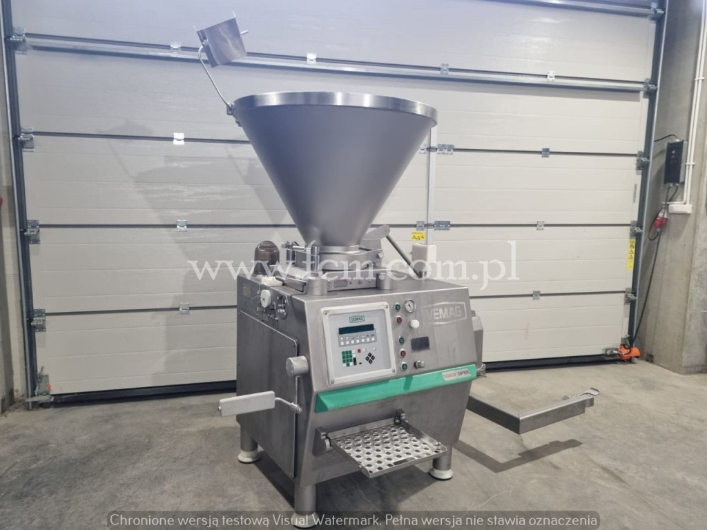 Nadziewarka Próżniowa Handtmann - Typ: VF 200 - Pojemność leja: 90\240 ( litrów ) - Moc całkowita: 7kW - Wydajność nadziewania: Max. 5000 kg/h - Porcjowanie: 5 - 100.000 gram - Załadunek ramienny do wózków 200l - Zasilanie: Elektryczne, 400V 50Hz 3N - Stal nierdzewna, kwasoodporna