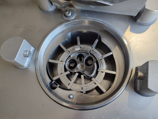 Wilk do mrożonego mięsa Meissner - Typ: SR 160/2 - Średnica gardzieli: 160 mm - Wymiary zewnętrzne: 1600 x 1200 x 1760 mm - Wymiary komory załadunkowej: 1030 x 870 mm - Załadunek do wózków 200L - Wykonany ze stali nierdzewnej (gardziel wykonana z mosiądzu) - Wysokiej jakości wilk do mięsa świeżego oraz mrożonego (z temperaturą do -25°C) - Stan: Używany, gotowy do pracy