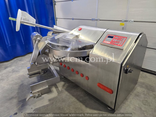 - Producent : KG WETTER - NIEMCY - Typ : SM 120 T2M - Pojemność misy 120 litrów - 2 biegi obrotowe głowicy nożewej - 2 biegi misy - 2 biegi wolne do mieszania - Pobór mocy : 31/40 kW - Ramię do wyładunku - Termometr -Wymiary urządzenia : Długość : 215 cm , Szerokość : 140 cm, Max.wysokość: 190cm -Waga : 1540kg Zintegrowana szafa sterownicza, Maszyna po remoncie,