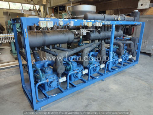 Zespół sprężarek Bitzer - Typ: 6J-22.2Y-40P (x3) - Przepływ: 95,3 m3/h (x3) - Wydajność chłodnicza: 157 kW przy -10°C/40°C, 90kW przy -25°C/40°C, 33 kW przy -40°C/40°C - Czynnik chłodniczy: R404A - Wymiary urządzenia: 2100 x 800 x 1850 mm - Stan magazynowy: 1 sztuka