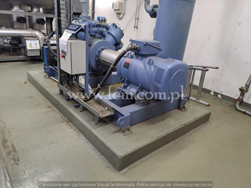 Cooling installation, consisting of: 2 GEA Grasso reciprocating cooling compressors, type: (1x) Grasso 612E package, type: (1x) Grasso 412E package, EM Polar pressure vessel, type: DM1600, Kühlturm GmbH evaporative condenser type: KIV 2/12-28-12, 2, switch and control cabinets, 3 pallets with valves, additional spare parts