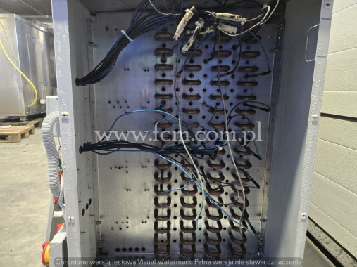 Używana chłodnica firmy ProFroid w bardzo dobrym stanie technicznym. Urządzenie jest wyposażone w grzałki elektryczne. Posiadamy agregat chłodniczy do kompletu.