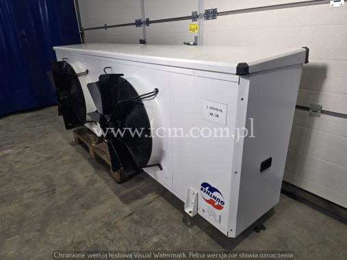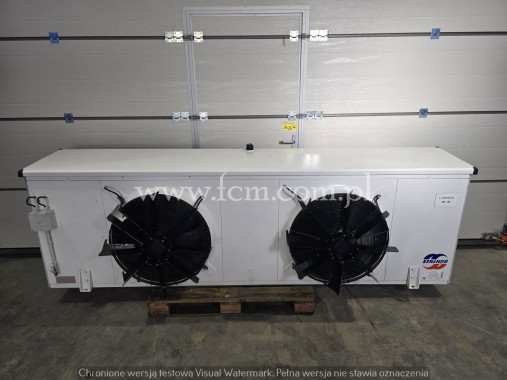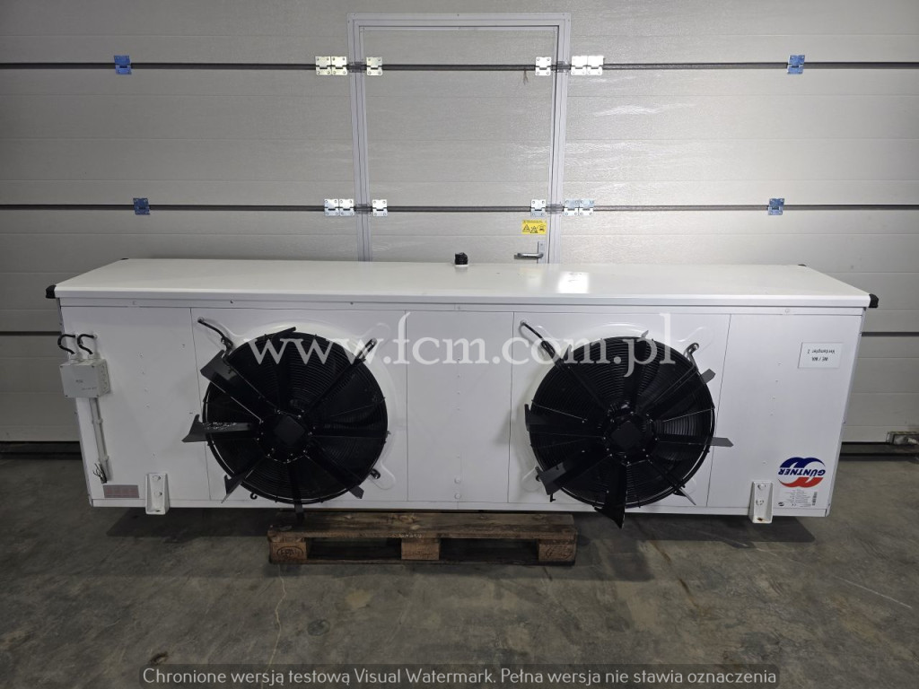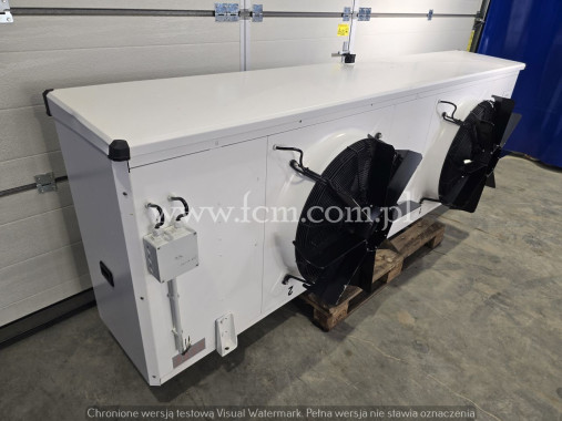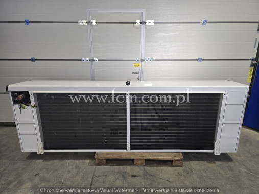 Chłodnica podsufitowa dwustronna Guntner - Typ: DHF 035B/44-L1 - Wydajność chłodnicza: 15 kW przy DT8 - Lamel: 4 mm - Ilość wentylatorów: 4 x 350 mm - Wymiary urządzenia: 2720 x 850 x 250 mm - Czynnik chłodniczy: Freon - Pojemność: 13.6 L - Stan magazynowy: 1 sztuka