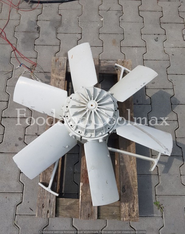 Używany wentylator o średnicy 700 mm w dobrym stanie technicznym.