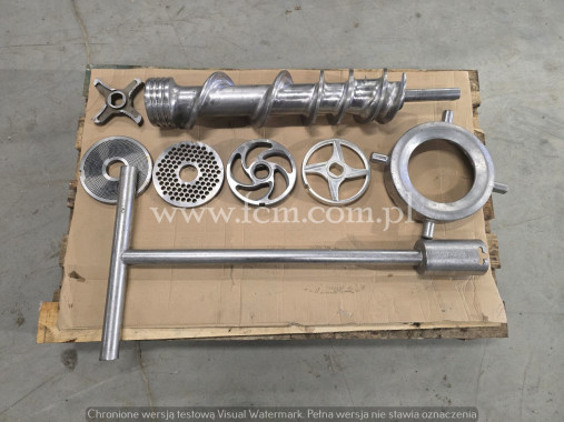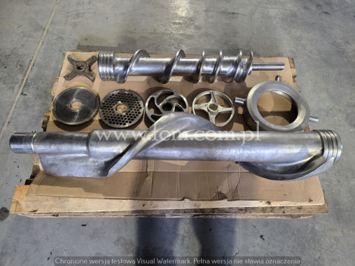 Wilk Meissner - Typ: AM 114 - Średnica gardzieli: 114 mm - 2 biegi prędkości - Moc: 9 kW - Zbudowany ze stali nierdzewnej (materiał gardzieli - mosiądz) - Zasilanie elektryczne: 380V 50HZ - Wymiary zewnętrzne: 1250 x 650 x 1200 mm - Wymiary komory zasypowej: 570 x 590 mm - Stan magazynowy: 1 sztuka - Stan: Używany, dobry