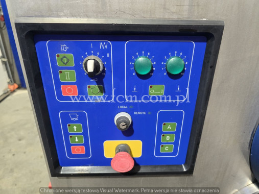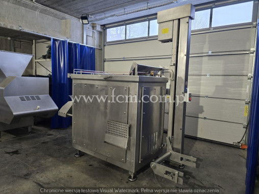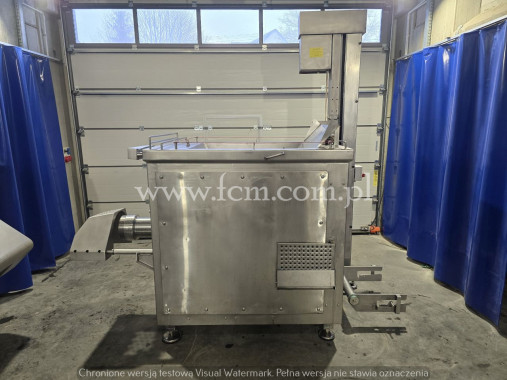 WILKO-MIESZAŁKA KOLBE Typ: MWE 32 Srednica gardzieli: 98 mm Zbiornik zasypowy z mieszadłem o pojemności 120l Wydajność dla sita 3 mm: 1400 kg/h Prędkość obrotowa mieszadła: 24 obr/min Moc silnika głównego: 5,5 kW Moc silnika mieszadła: 1,1 kW Wymiary urządzenia: 1350mm x 770 mm x 1330 mm Wysokość załadunku: 1270 mm Wysokość gardzieli mierzona od podłoża: 490 mm Waga netto: 480 kg Stan magazynowy: 1 sztuka Stan urządzenia: Używany/ urządzenie w pełni sprawne