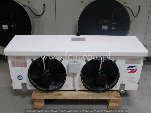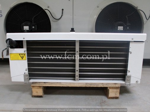 Chłodnica ECO - Typ: CTE051L8ED - Wydajność chłodnicza: 3.15 kW przy DT8, 2.5 kW przy DT7 - Lamel: 8 mm - Grzałki elektryczne - Ilość wentylatorów: 3 x 250 mm - Wymiary urządzenia: 1360 x 500 x 400 mm - Czynnik chłodniczy: Freon - Stan magazynowy: 1 - Numer magazynowy: CH 338 - Stan: Używany