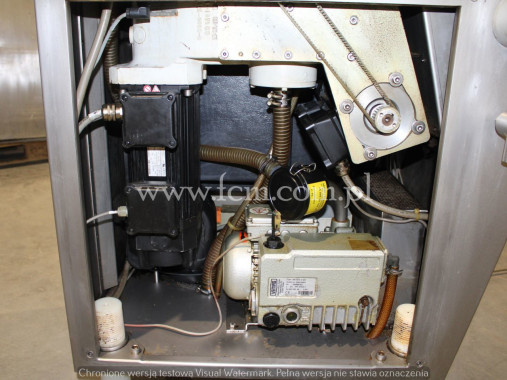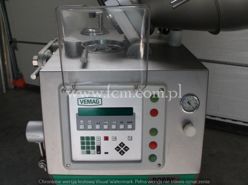 Nadziewarka próżniowa Handtmann - Typ: VF 50 - Wydajność: do 2600 kg/h - Pojemność kosza: 50 litrów - Ciśnienie nadziewania: do 55 bar - Prędkość porcjowania do 420 porcji/min przy tolerancji 10% - Zakres porcjowania: 5-100.000 gr. - Moc: 4 kW - Zasilanie elektryczne: 400V 50HZ 3N - Przykładowa tabela wydajności maszyny dla porcjowania i okręcania: - 25g - 420 por./min - 50g - 350 por./min - 100g - 250 por./min - 200g - 160 por./min - Waga netto: 660 kg - Wymiary zewnętrzne: 580 x 950 x 1600 mm - Wykonany ze stali nierdzewnej - Komplet lejków - Stan magazynowy: 1 sztuka - Stan: Używany - Okręcarka w dodatkowym wyposażeniu (płatna)