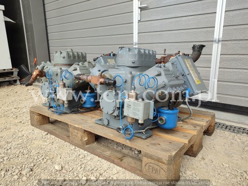 Sprężarka DWM COPELAND - Typ: D6DH5-3500-AWM/D - Przepływ: 106.3 m3/h - Wydajność chłodnicza: 62 kW przy -10°C/40°C, 32 kW przy -25°C/40°C - Czynnik chłodniczy: R404A - Stan magazynowy: 5 sztuk - Numer magazynowy: S 113 - Stan: Używany