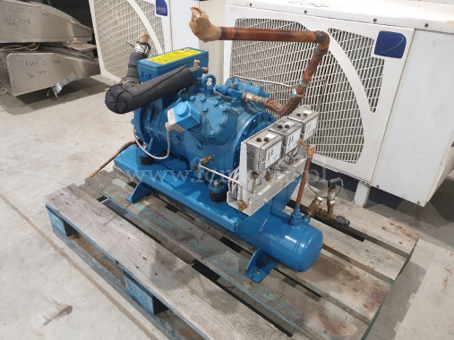 Używana sprężarka chłodnicza firmy Frascold w dobrym stanie technicznym. Posiadamy skraplacz oraz chłodnicę do kompletu.
