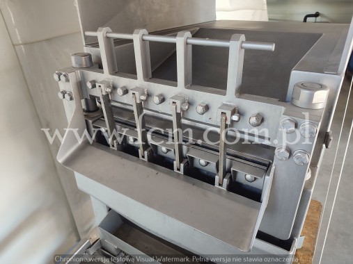 Gilotyna Ruhle - Typ: GFR 450 - Wydajność: 3 000 kg/h - Wielkość bloków: 450 x 250 mm - Temperatura robocza: do -20°C - Moc silnika: 5.5 kW - Wymiary zewnętrzne: 1500 x 700 x 1400 mm - W całości wykonany ze stali nierdzewnej - Waga: 350 kg - Zasilanie: 400V 50Hz 3N - Stan magazynowy: 1 sztuka - Stan: Używany, gotowa do pracy