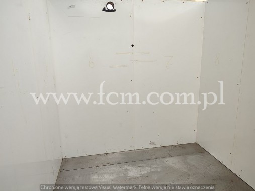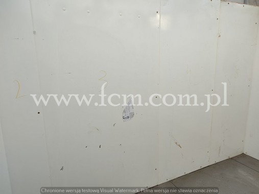 Komora mroźnicza komplet - Wymiary zewnętrzne: 7200 x 3000 x 3000 mm - Podłoga z płytą ze stali nierdzewnej - Mroźnia podzielona na dwie komory (możliwość zrobienia jednego, dużego pomieszczenia) - Grubość płyt ścian i podłogi: 150 mm - Stan magazynowy: 1 komplet