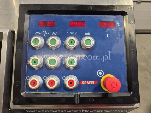 - Producent : KG WETTER - NIEMCY - Typ : SM 120 T2M - Pojemność misy 120 litrów - 2 biegi obrotowe głowicy nożewej - 2 biegi misy - 2 biegi wolne do mieszania - Pobór mocy : 31/40 kW - Ramię do wyładunku - Termometr -Wymiary urządzenia : Długość : 215 cm , Szerokość : 140 cm, Max.wysokość: 190cm -Waga : 1540kg Zintegrowana szafa sterownicza, Maszyna po remoncie,