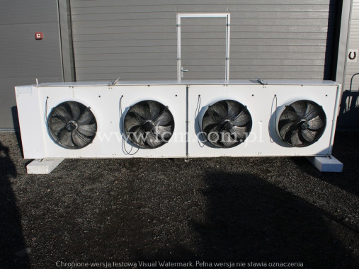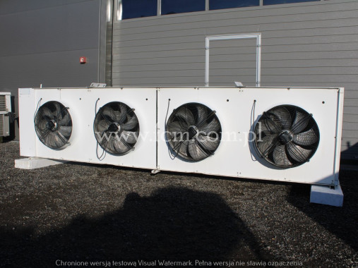 Skraplacz LUVE - Typ: EAV 9N 6222 - Wydajność chłodnicza: 312/388 kW - Przepływ powietrza: 64 000/88000 m3/h - Ilość wentylatorów: 4 x 900 mm - obr/min: 685/890 - Wymiary urządzenia: 4780 x 2400 x 1800 mm - Stan magazynowy: 1 sztuka