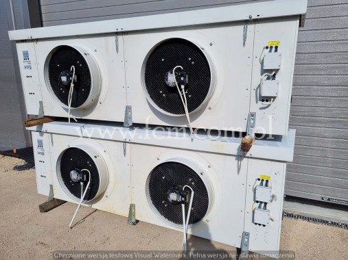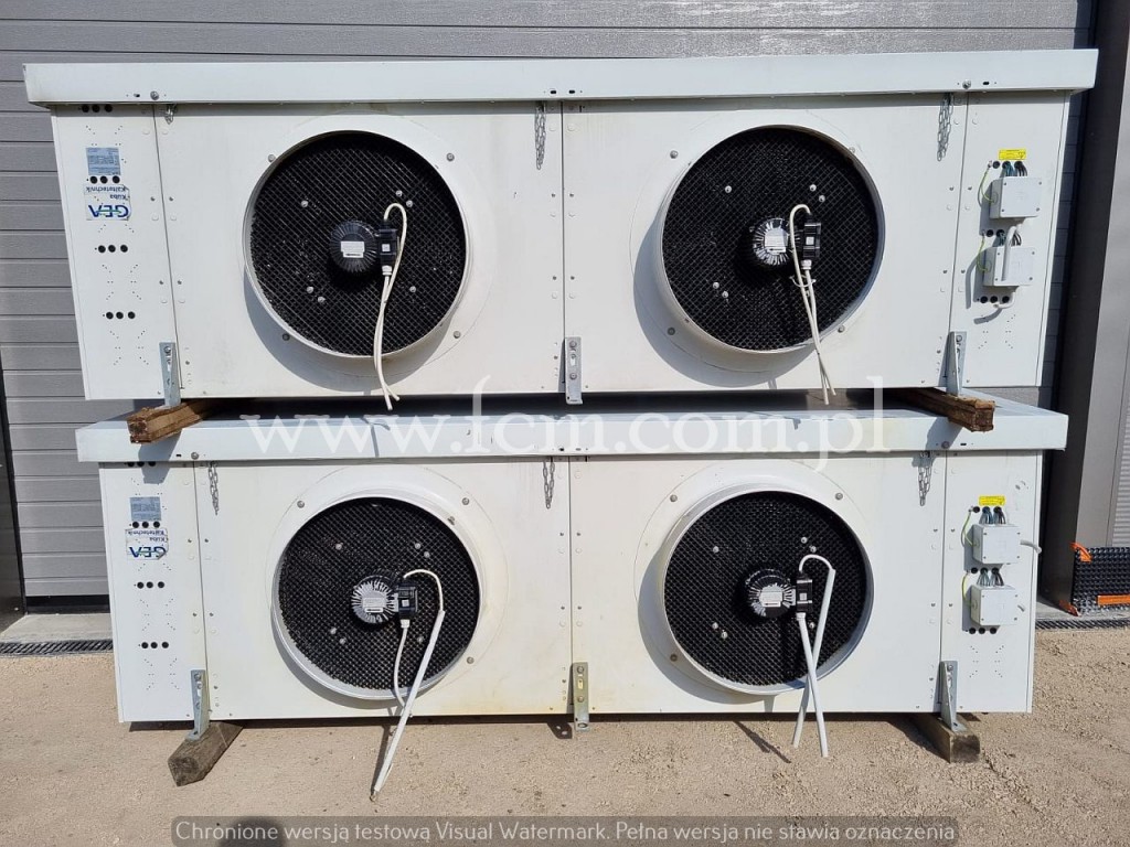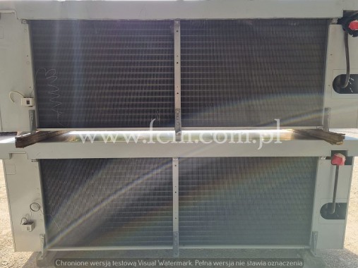 Chłodnica Guntner - Typ: GDF 030.1B/27-E - Wydajność chłodnicza: 2.83 kW przy DT8 - Lamel: 7 mm - Grzałki elektryczne - Ilość wentylatorów: 2 x 300 mm - 900/1250 obr/min - Wymiary urządzenia: 1640 x 500 x 250 mm - Czynnik chłodniczy: Freon - Pojemność: 4.1 L - Rok produkcji: 2012 - Stan magazynowy: 1 sztuka