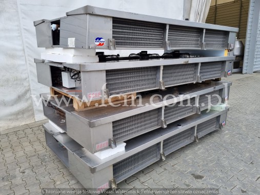 Używana chłodnica firmy Guntner w dobrym stanie technicznym. Urządzenie jest wyposażone w grzałki elektryczne. Posiadamy agregat chłodniczy do kompletu.