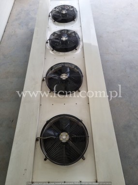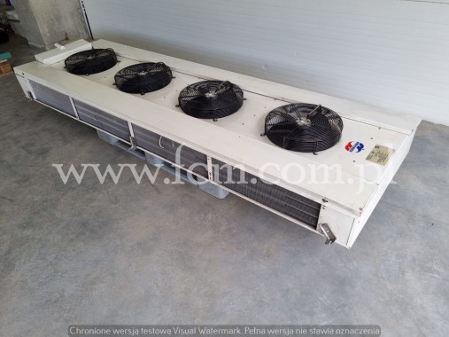 Chłodnica podsufitowa dwustronna Guntner - Typ: DHF 035B/44-L1 - Wydajność chłodnicza: 15 kW przy DT8 - Lamel: 4 mm - Ilość wentylatorów: 4 x 350 mm - Wymiary urządzenia: 2720 x 850 x 250 mm - Czynnik chłodniczy: Freon - Pojemność: 13.6 L - Stan magazynowy: 1 sztuka