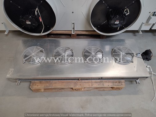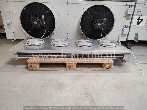 Chłodnica podsufitowa dwustronna Guntner - Typ: S-GDF 031C/44 - Wydajność chłodnicza: 7.6 kW przy DT8 - Lamel: 4 mm - Ilość wentylatorów: 4 x 300 mm - Wymiary urządzenia: 2600 x 500 x 350 mm - Czynnik chłodniczy: Freon - Pojemność: 10.1 L - Waga: 50 kg - Stan magazynowy: 1 sztuka