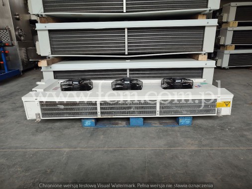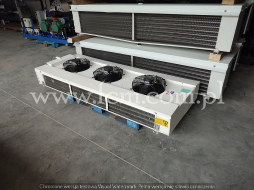 Chłodnica Helpman - Typ: LEX-16 E - Wydajność chłodnicza: 8 kW przy DT8 - Lamel: 6 mm - Grzałki elektryczne - Ilość wentylatorów: 1 x 450 mm - Obr/min: 1410 - Wymiary urządzenia: 1100 x 650 x 700 mm - Czynnik chłodniczy: Freon - Stan magazynowy: 1 sztuka