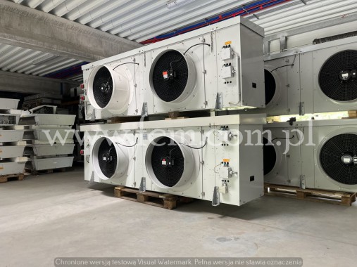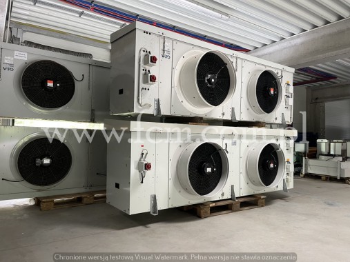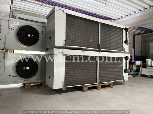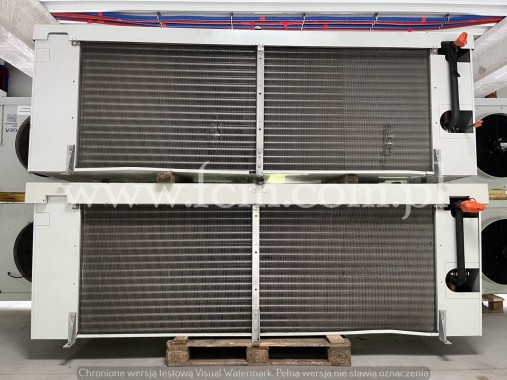 Chłodnica Kuba - Typ: SGBE 63-F62 - Wydajność chłodnicza: 33.3 kW przy DT8, 26.6 kW przy DT7 - Lamel: 7 mm - Grzałki elektryczne - Ilość wentylatorów: 2 x 630mm - Wymiary urządzenia: 3020 mm x 850 mm x 1000mm - Czynnik chłodniczy: Freon - Pojemność: 45 ltr - Stan magazynowy: 5 sztuk