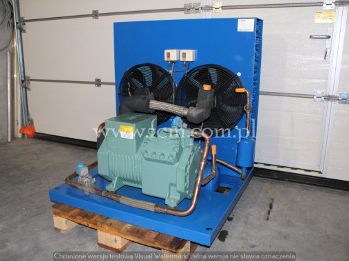 Skraplacz Guntner - Typ: GVH 090.2A/2x2-N(D) - Wydajność chłodnicza: 408/357 kW - Przepływ powietrza: 111 600/91 600 m3/h - Ilość wentylatorów: 4 x 900 mm - obr/min: 890/700 - Wymiary urządzenia: 4300 x 2300 x 1500 mm - Pojemność: 141 L - Waga: 980 kg - Stan magazynowy: 1 sztuka