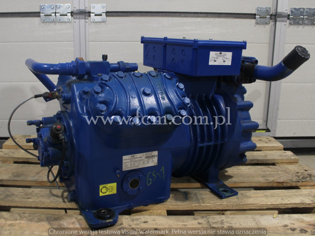 Zespół sprężarkowy Bitzer - Typ: 4DC-5.2Y-40S (x3) - Przepływ: 26.9 m3/h (x3) - Wydajność chłodnicza zestawu: 55.5 kW przy -5°C/40°C, 45 kW przy -10°C/40°C, 23.4 kW przy -25°C/40°C, 18 kW przy -30°C/40°C - Czynnik chłodniczy: R404A - Stan magazynowy: 1 zespół