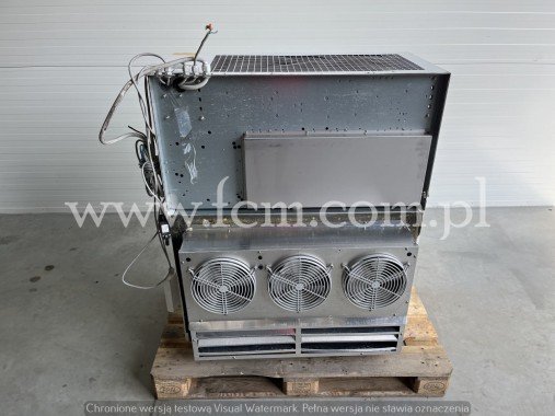 Zespół sprężarkowy Frascold - Typ: S10-52Y (x2) - Przepływ: 51.5 m3/h (x2) - Wydajność chłodnicza zestawu: 68 kW przy -5°C/40°C, 56 kW przy -10°C/40°C, 30 kW przy -25°C/40°C - Czynnik chłodniczy: R404A - Stan magazynowy: 1 zespół - Stan: Używany Skraplacz ECO - Typ: KCE63C2H - Wydajność chłodnicza: 76 KW - Ilość wentylatorów: 3 x 630 mm - Wymiary urządzenia: 3350 x 1070 x 1100 mm - Średnica wejściowa/wyjściowa: 54/28 mm - Stan magazynowy: 1 sztuka - Stan: Używany