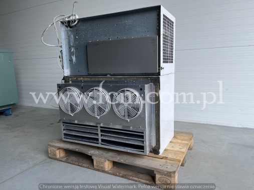 MONOBLOK- AGREGAT CHŁODNICZY "VIESSMANN" -Posiadamy kilkadziesiąt sztuk rożne modele do chłodni lub do mroźni -Do komory chłodniczej / mroźniczej od 10 do 35m3 -Urządzenie kompletne ze sterownikiem do regulacji temperatury -Zasilanie: 220V -Nominalny pobór mocy : 0.9-1.6kW Stan: Urządzenie sprawne, nabite gazem, gotowe do pracy Monobloki to urządzenia, które posiadają już kompletny wspólny układ skraplający (skraplacz) i układ wymiany ciepła (parownik). Daje to możliwość montowania na dachach komór bez trudnych instalacji rur. Wystarczy podłączyć pod zasilanie i agregat chłodzi. Montowany na dachu