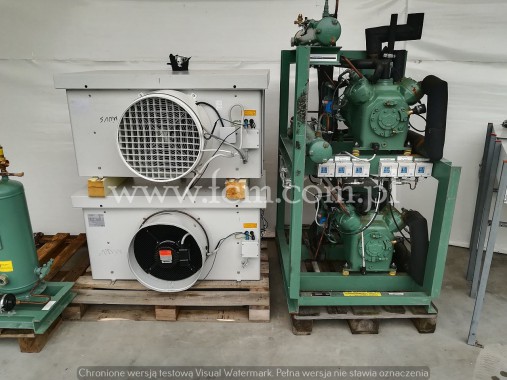 We can offer Cold water installations consisting of : - 3x compressors Bitzer HSKC7451-70Y-40P, Each volume:192m3/h, each capacity : 110 kW at -10/40 for R407C - 1x compressors Bitzer CSH7563-80Y-40P, Volume:227m3/h, capacity : 112 kW at -10/40 for R407C - Compressor mounting frame with 4pcs original Plate exchanger - Original Control Box panel The system worked on R407C,is dismantled and ready for reinstallation.