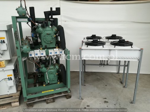 Używany kompletny system chłodniczy. Zespół sprężarkowy Bitzer + wieża chłodnicza EVAPCO