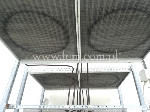 Zespół sprężarkowy Frascold - Typ: S10-52Y (x2) - Przepływ: 51.5 m3/h (x2) - Wydajność chłodnicza zestawu: 68 kW przy -5°C/40°C, 56 kW przy -10°C/40°C, 30 kW przy -25°C/40°C - Czynnik chłodniczy: R404A - Stan magazynowy: 1 zespół - Stan: Używany Skraplacz ECO - Typ: KCE63C2H - Wydajność chłodnicza: 76 KW - Ilość wentylatorów: 3 x 630 mm - Wymiary urządzenia: 3350 x 1070 x 1100 mm - Średnica wejściowa/wyjściowa: 54/28 mm - Stan magazynowy: 1 sztuka - Stan: Używany